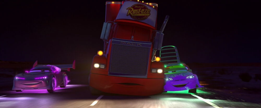En Cars, Boost y su pandilla de autos tuneados (él mismo, DJ, Snot Rod y Wingo) están causando problemas en la interestatal mientras un adormilado Mack hace todo lo posible para transportar a McQueen durante toda la noche. Después de que DJ y Boost se detengan a su lado y comiencen a empujarlo, Wingo enciende las luces y descubre que en realidad están al lado del camión de Rayo McQueen. Mientras tanto, uno de los juguetes de Rayo se cae del estante y cae sobre el reposapiés, lo que hace que el remolque de Mack se abra y lo deje colgando del borde. Snot Rod comienza a preparar un estornudo, lo que hace que los demás se alejen a toda velocidad para salir del radio de la explosión. El ruido hace que Mack se despierte sobresaltado y que McQueen se caiga del remolque.