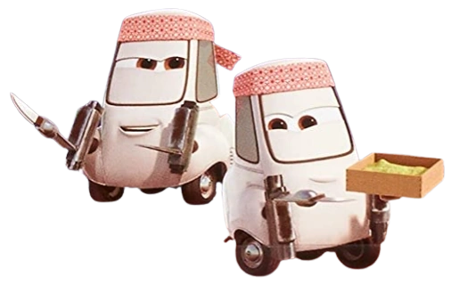 Edamame Tsashimi y Daisu Tsashimi son hermanos chefs de sushi que primero aparecen en Cars 2. Son Montacargas Alza Tutto que están pintados de blanco, con forro negro alrededor de sus puertas y ojos, además de unas diademas blancas y rojas.
