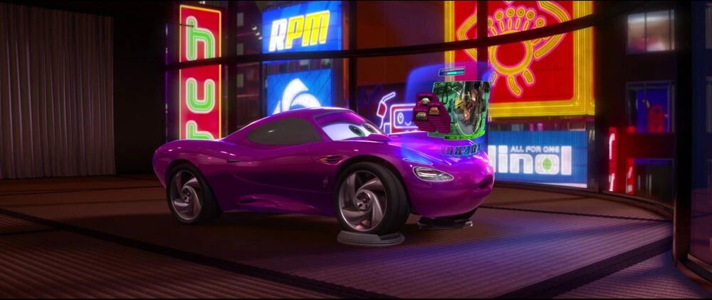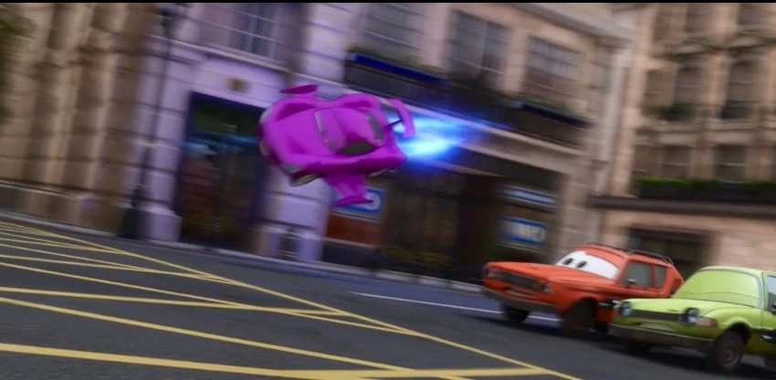 - Su parecido con el Infernus del juego de acción y aventuras de 2001, Grand Theft Auto III, también ficticio. *Por razones desconocidas, en la versión LeapFrog de Cars 2, en un breve momento, una escena cinemática muestra a Rayo McQueen, Mate, el resto de la pandilla/habitantes de Radiador Springs y Finn en Londres. Podemos ver que sus neumáticos, de alguna manera, se representan con letras blancas Lightyear visibles (como McQueen y todos los demás pilotos de la Copa Pistón; la fuente está basada en una anterior a la siguiente era), a diferencia de la película.